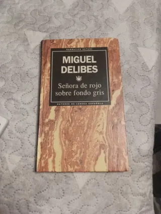 Señora de rojo sobre fondo gris . Libro de lectura