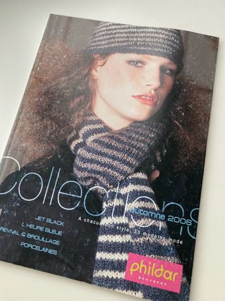 Revista de punto de la marca Phildar, correspondiente a la edición 460 de la temporada de invierno 2006/2007, incluye 32 creaciones originales bajo la temática "Désirs d'Hiver". Los diseños destacan por una estética de inspiración "folk" y bohemia, con texturas de punto grueso, detalles de pompones y acabados artesanales propios de mediados de los años 2000. Contiene instrucciones técnicas completas, diagramas de montaje para costura invisible y esquemas detallados para cada modelo. Buen estado vintage; ligero desgaste en la portada, páginas interiores limpias y completas.