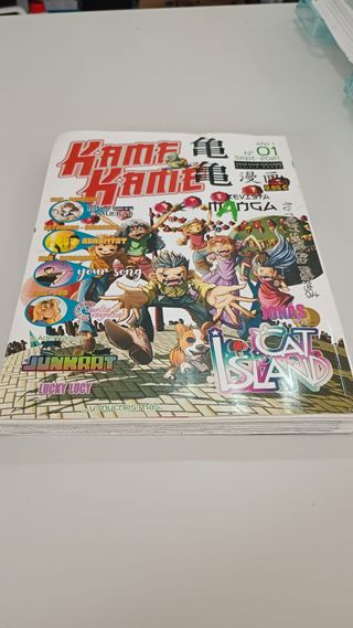REVISTA MANGA KAME KAME No 1 Varios autores Revista de historietas en formato revista manga japonesa encuadernada en rústica de 320 páginas interiores en blanco y negro más cubiertas en color que contiene una antología de obras de autores nacionales y extranjeros. Serie abierta.Con la participación de autores españoles y extranjeros, la revista ofrece series y one-shots autoconclusivos en donde tendrán cabida un gran número de géneros propios del manga como Shonen, Isekai, Shojo, BL, Seinen, Yuri, etc. De cadencia trimestral.