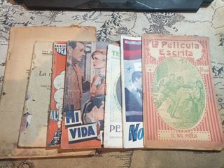 “La Película Escrita” / El Mal Policía “Ediciones Biblioteca Films” / Noche y día “Tras la Pantalla. Galería de artistas cinematográficos” / Pearl White “Ediciones ideales” / Dos ejemplares: “Mi vida entera” y “Al este sin rumbo” “Los grandes Films Modernos” / La mujer preferida “Las grandes novelas de la pantalla” / Esposas frívolas