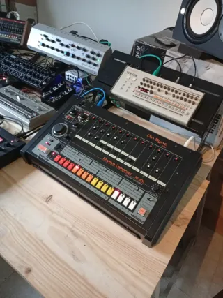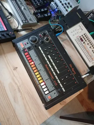 Caja de ritmos Behringer rd8 Rhythm Designer. - Diseño de 16 pasos. - 16 pads de batería. - Control de nivel, tono y decay. Con caja tal y como viene de tienda. Estudiaria cambio por material de estudio, sintes o modulos eurorack.