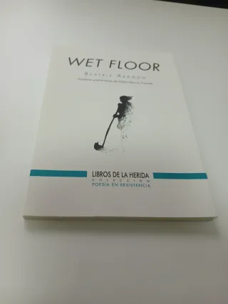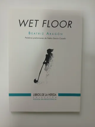 CAUTION: WET FLOOR. Cuidado: suelo húmedo. La señal nos alerta para hacernos conscientes de lo real: quiere avisarnos del peligro, que nos demos cuenta de la singularidad de la situación y las circunstancias, sugerirnos que tengamos precaución para reducir los riesgos. Unas pocas palabras pueden pasar inadvertidas o salvarnos de los daños provocados por una superficie resbaladiza. Diario lírico, retrato descarnado de un tiempo y un oficio, en Wet floor convergen la reflexión existencial, el fulgor de lo cotidiano, la experiencia de la precariedad laboral y la reivindicación de la dignidad y la injusticia, en una audaz exploración de