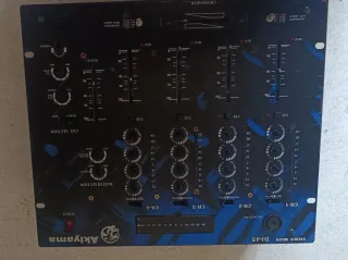 Mesa de mezclas Akiyama DJ-45. - Diseño robusto y profesional. - Controles de canal y crossfader. - Sección de cue para preescucha. - Indicadores de nivel y beat.