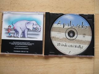 CD del grupo A Palo Seko con el título ¿Dónde está Wally?. - Incluye el tema ¿Dónde está Wally?. - Portada con ilustración de un elefante y Wally. - Información de contacto del grupo en la contraportada.