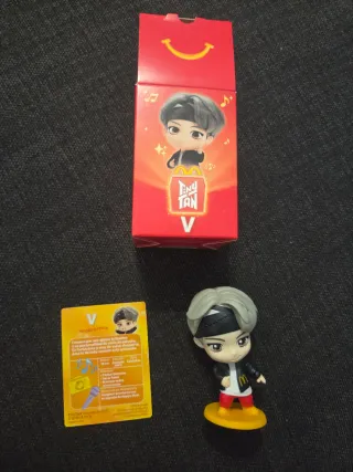 Figura coleccionable de Tiny Tan V de BTS, edición especial de McDonald's. - Diseño inspirado en el artista. - Colores vibrantes. - Base de exhibición. - Detalle del logo de McDonald's.