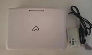 Reproductor de DVD portátil de la marca Energy Sistem en color blanco. En perfecto estado - Pantalla integrada. - Mando a distancia incluido. - Cable de carga para coche.