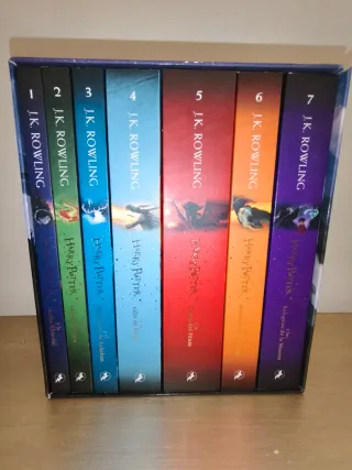 Vendo lote de los 4 primeros libros de Harry Potter en tapa dura, en español: 1️⃣ Harry Potter y la piedra filosofal 2️⃣ Harry Potter y la cámara secreta 3️⃣ Harry Potter y el prisionero de Azkaban 4️⃣ Harry Potter y el cáliz de fuego 📚 Edición juvenil con lomos de colores 📖 En buen estado, solo señales normales del uso 🎁 Ideales para empezar la saga o para colección 👉 Se vende el lote completo 💬 Precio negociable 📦 Entrega en mano o envío por Wallapop