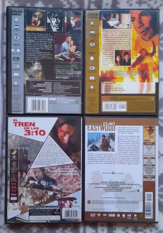 Conjunto de cuatro películas en formato DVD. - Posesión Infernal (Evil Dead) recorte en contraportada. - The Watcher (Juego Asesino) - El Tren de las 3:10 - El Jinete Pálido Todas se ven perfectamente. Disco de Posesión Infernal de videoclub, algunas marcas como muestro en foto. Funciona perfectamente. Todas son películas de mi colección que ya he visto. Se envía por correos o inpost.