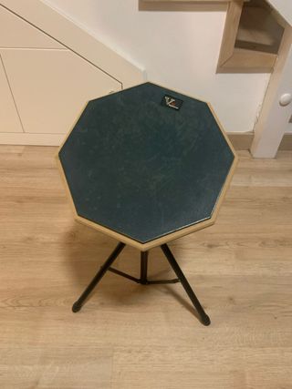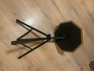 Pad de práctica de batería octogonal con base de trípode. - Superficie de práctica de color azul. - Borde de madera. - Trípode metálico plegable.