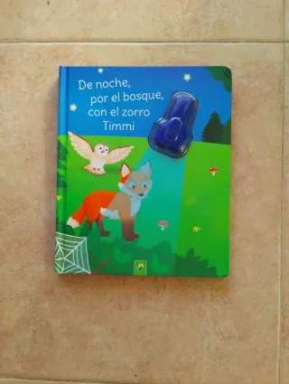Libro infantil titulado "De noche, por el bosque, con el zorro Timmi" incluye una linterna ultravioleta. A través de este libro interactivo, los niños acompañan al zorro Timmi en su recorrido por el bosque durante la noche. La linterna UV permite descubrir detalles ocultos en las páginas, creando una experiencia de lectura más inmersiva y divertida