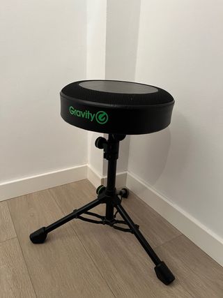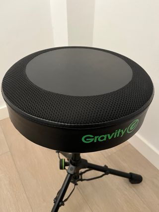 Silla de batería Gravity FD SEAT 1 - Trono / Taburete de batería - Plegable - Altura ajustable de 560 - 800 mm - Ajustable de forma continua - Ajuste en altura bloqueable - Asiento transpirable - Construcción de metal resistente - Peso máximo: 100 kg - Diámetro del asiento: 330 mm - Material: aluminio fundido a presión, acero y zinc fundido a presión