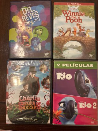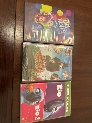 Lote de 3 películas en DVD. - Del Revés (Inside Out) - Charlie y la Fábrica de Chocolate - Rio / Rio 2 (2 películas)