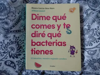 Libro "Dime qué comes y te diré qué bacterias tienes" de Blanca García-Orea (@blancanutri). Un imprescindible para entender la relación entre la alimentación y la microbiota. El libro está impecable por dentro: las páginas están blancas, sin anotaciones, sin subrayados y sin dobleces. Se ha leído con mucho cuidado. Estado exterior: Como se puede ver en las fotos, tiene un pequeño levantamiento del plastificado protector en una zona de la solapa (típico del uso y del tipo de encuadernación). Por este detalle estético, que no afecta en nada a la lectura ni a la estructura del libro, lo dejo rebajado a solo 9€.