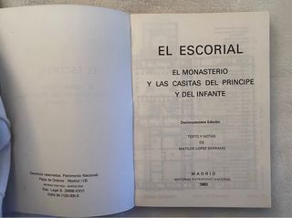 Libro “El Escorial” – Guía oficial Patrimonio Nacional Edición histórica 1983. Guía oficial sobre el Monasterio de El Escorial escrita por M. López Serrano. Incluye historia, arquitectura y fotografías, con textos en varios idiomas. Edición en buen estado, ideal para amantes del arte, estudiantes o visitantes del monumento. Tapa blanda. 228 páginas
