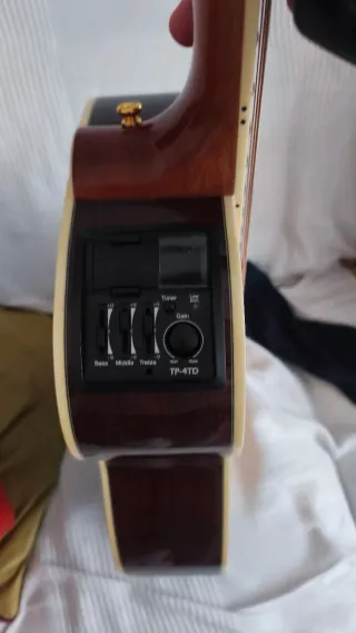 Guitarra acústica de la marca Takamine. Presenta un diseño clásico y elegante. - Cuerpo de madera natural. - Diapasón con incrustaciones. - Aro decorativo alrededor de la boca. No atiendo a cambios ni a regateos