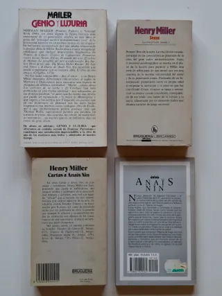 -Genio y lujuria (Norman Mailer) -Sexus (Henry Miller) -Cartas a Anaïs Nin (Henry Miller,) -Pájaros de fuego (Anaïs Nin)
