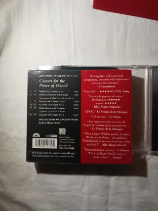 CD de música clásica de Vivaldi. - Título: Concert for the Prince of Poland. - Intérprete: The Academy of Ancient Music. - Director: Andrew Manze. - Sello discográfico: Harmonia Mundi.
