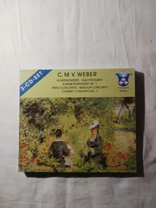Este set de 3 CDs presenta obras de C. M. V. Weber. - Incluye conciertos para piano, fagot y clarinete. - Títulos: Klavierkonzerte, Fagottkonzert, Klarinettenkonzert Nr. 1, Piano Concertos, Bassoon Concerto, Clarinet Concerto No. 1. - Edición Concerto Royale.