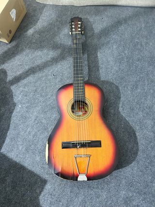 Guitarra clásica acústica con acabado degradado en tonos anaranjados y marrones. Ideal para iniciarse en la música. - Cuerpo de madera. - Seis cuerdas metálicas. - Clavijero con afinadores. - hay que restaurar un poco