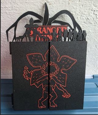 Expositor temático de Stranger Things, ideal para coleccionistas. - Diseño inspirado en la serie. - Compartimentos con nombres de personajes.