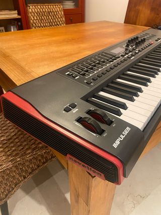 Teclado controlador MIDI Novation Impulse 61 en muy buen estado y funcionando perfectamente. Incluye soporte en X estable y resistente, listo para usar desde el primer momento. Controlador profesional con 61 teclas semicontrapesadas, ideal para producción musical, directo o estudio. Totalmente compatible con Logic Pro, Ableton, FL Studio y cualquier DAW. ✔ 61 teclas semicontrapesadas sensibles a la velocidad ✔ Pads retroiluminados ✔ Faders, knobs y controles de transporte ✔ Integración automática con DAWs ✔ Conexión USB (plug & play, sin fuente externa) ✔ Incluye soporte en X Cable no incluído. No tengo la caja