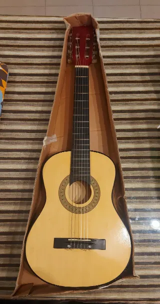 Guitarra española de la marca Molina. Ideal para iniciarse en la música. - Cuerpo de madera clara. - Diapasón con trastes. - Cuerdas de nylon.