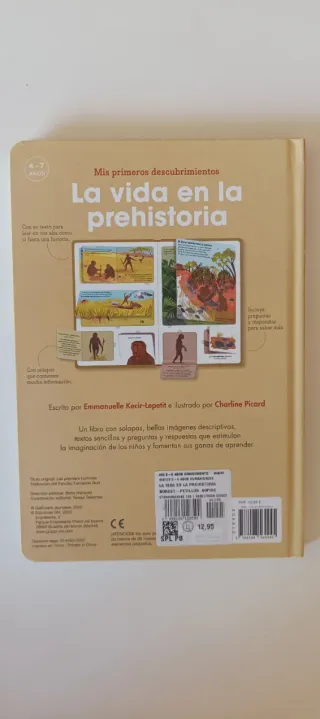 Libro infantil interactivo con 40 solapas en perfecto estado. Ideal para que los peques aprendan sobre la Prehistoria de forma divertida: cuevas, fuego, herramientas y arte rupestre. Formato resistente, ideal para primeras lecturas. Editorial SM , colección Mis primeros descubrimientos.