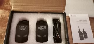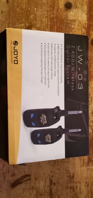 Sistema inalámbrico JOYO JW-03 para guitarra o bajo. Incluye transmisor y receptor. - Banda 2.4GHz con salto de frecuencia. - Calidad de señal de 48K/16bit. - Rango dinámico superior de 103dB. - Alcance de más de 100 pies en interiores. - Latencia inferior a 5 ms. - Transmisión simultánea en 4 canales. - Hasta 8 horas de reproducción por carga.