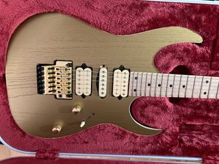 Made in Japan (Fujien #F1909350), con acabados y componentes premium. Cuerpo de fresno acabado Flat Gold. • Puente Edge Trémolo y clavijeros Gotoh • Pastillas: Dimarzio® Air NortonTM, Dimarzio® True VelvetTM, Dimarzio® The Tone Zone® (5 posiciones) • Mástil Super Wizard HP (arce/nogal) con bound birdseye maple y trastes Jumbo. * La guitarra está prácticamente nueva, totalmente ajustada. Solo hay un detalle : la pintura de la parte anterior presenta un pequeño desconchado (mirar foto), pero no afecta a la madera. * Solo venta, pero puedo considerar cambio SOLO por GIBSON LP standard o SG’61 USA o Japón en muy buenas condiciones.