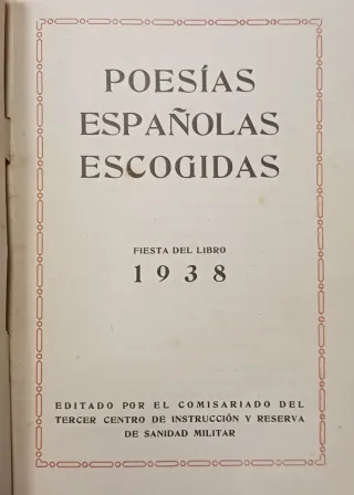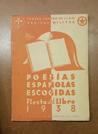 Editado por el Comisariado del Tercer Centro de Instrucción y Reserva de Sanidad Militar (Ejército Popular de la República) Fiesta del Libro - 1938 Folleto / poemario de propaganda republicana impreso en plena guerra. Material efímero de propaganda republicana de 1938, poco común en el mercado porque muchos se destruyeron tras 1939.
