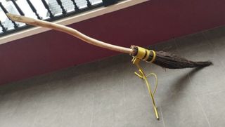 Pieza dorada de la escoba de Harry Potter, utilizada como elemento decorativo. - Diseño inspirado en la saga. - Color dorado metálico.