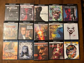 Colección de películas en formato 4K UHD Blu-ray. - La Primera Purga (disco Bluray) - Deadpool (precintada) - Múltiple - Escuadrón Suicida - Batman v Superman - Jumanji - Cortina Rasgada - The Core (precintada) - Godzilla: Rey de los Monstruos (precintada) - It (Capítulo 1) (disco Bluray) - Hércules - El Cadáver de la Novia - Halloween Kills - ¡Shazam! - Space Jam