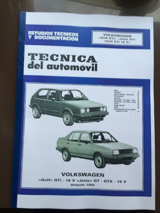 Manual de reparacion y taller para vw vag volkswagen golf y jetta valido para todos los modelos golf y jetta gti y gti 16v ev y kr 136 CV motor gasolina 1800 para reparar y mantener motor caja de cambios inyeccion electrónica frenos embrague eje delantero trasero amortiguadores equipos eléctricos esquema instalación eléctrica carroceria Reproduccion para talleres como el que se reparaba en los talleres de la epoca este tipo de coches. EDICION RENOVADA CON EL MOTOR PB 112CV Se hacen envios por wallapop gls e impost SE ENVIA A canarias por correos segun tarifas vigentes SE HACEN envios a Portugal e Italia