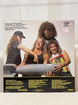 Edición original UK 1988. Vinilo en muy buen estado. Algo de hairline sin afectar par nada al sonido. Muy bien sonido. Insert en excelente estado. La carpeta es la que está algo peor. Lomos algo rozados y restos de pegatina en parte trasera. Anthrax. Slayer. Heathen. Xentrix. Overkill. Kreator. Sodom. Onslaught. Flotsam and Jetsam. Megadeth. Testment. Exodus. Forbidden. Dark Angel. Venom. Exumer. Posessed. Sepultura. Celtic Frost. Coroner. Destruction. Pungent Stench. Carcass. Benediction. Entombed. Helloween. Iron Maiden. Judas Priest. Accept. Saxon. Metallica. Mötley Crüe. Picture. Yes. Dream Theatre.