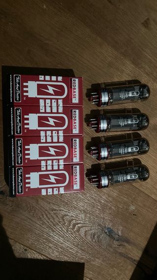 Se vende cuarteto de válvulas EL34 de la marca REDBASE, modelo Premium de TAD. Nuevas. Compradas el 9 de enero en Tube Amp Doctor. Con toda la garantia. Puedo dar factura. - Cuatro válvulas EL34. - Modelo: REDBASE Premium. - Marca: TAD (Tube Amp Doctor).