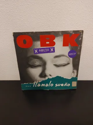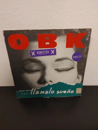 Vinilo del grupo OBK, con el título Llamalo Sueño. - Portada con imagen de mujer. - Incluye pegatinas de Noctua Discoteca.