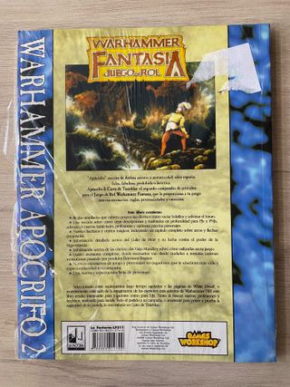 Nuevo, sin abrir, precinto original. Publicado año 2000. Suplemento para el juego de rol Warhammer Fantasía JdR, volumen 2 de la serie “Apócrifo”. Incluye reglas opcionales, equipo, profesiones y material de ambientación clásico. Edición española descatalogada.