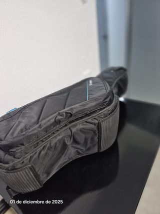 INTERIOR MUY ACOLCHADO. Funda para instrumento musical de la marca ORTOLA. Fabricada en material sintético negro con un acabado texturizado. - Cierre de cremallera. - Dos asas de transporte. - Correa ajustable para colgar. - Bolsillo exterior frontal.