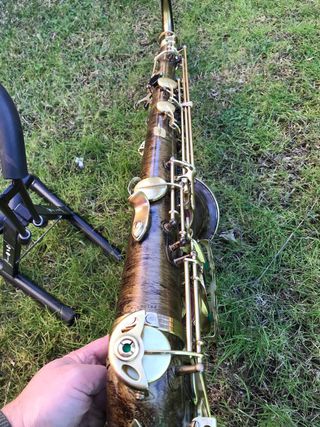Saxofón tenor Selmer Serie III en acabado oscuro con detalles dorados. Un instrumento de alta gama!! Se le ha hecho un trabajo efecto madera, lacado de nuevo con zapatillas de calidad, corchos, fieltros,todo nevo! El saxo va de lujo,venta solo en persona para que puedas verlo y probarlo! No envio!puedo estudiar aceptar otro saxo de menos valor ajustando diferencias!