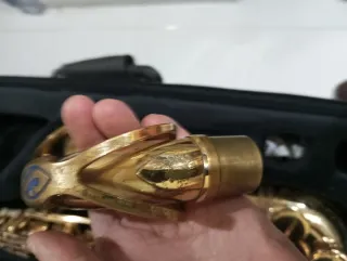 Boquilla metálica para saxofón tenor. O cambio por lawton mentalica para sax alto 6 - Acabado dorado brillante. - Incluye tapa y abrazadera.