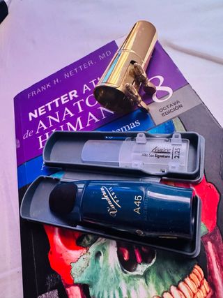 Venta de tres productos para saxofón: - Boquilla para saxofón alto Selmer S80 C*, fabricada en Francia. - Arnés cruzado para niños (como nuevo) - 3 paquetes de cañas para saxofón alto nuevos