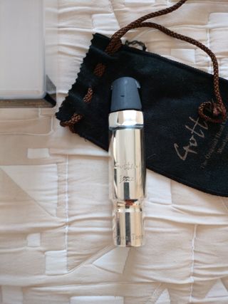 Boquilla para saxo tenor Gottsu Sepia Tone, modelo Jazz metal, medida 8*, es equivalente más o menos a 7*. Está en perfecto estado. Articulación fácil, buena proyección. Timbre con mucho color, más o menos en la mitad del espectro oscuro -brillante. Se puede probar en Madrid. El precio es algo negociable.