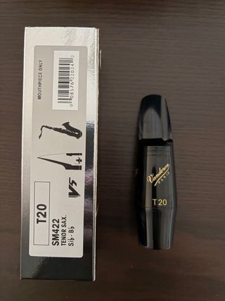La vendo porque probé otra marca y modelo y ya no la uso. Está usada solo de escogerla en la tienda literalmente (15 min). Está nueva y sin usar (ya había usado más t20 en el pasado, la compré para seguir como hasta entonces). Se puede ver y probar. Boquilla para saxofón tenor Vandoren T20. - Modelo: T20 - Tipo: Saxo Tenor - Marca: Vandoren Paris - Referencia: SM422