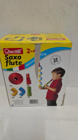Juguete musical Saxo Flute de Quercetti, diseñado para niños de 2 a 4 años. Permite construir un instrumento musical. - Fabricado en Italia. - Incluye 16 piezas. - Colores: rojo, azul, verde y amarillo.