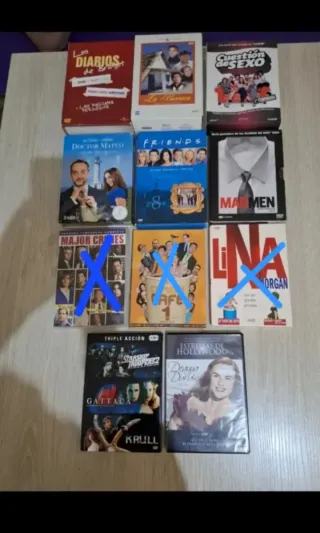 - La Barraca serie completa 5 euros - Cuestión de sexo 1 temp. 7 euros Mad Men temporada 2 4 euros - Doctor Mateo 2 temp. 5 euros Friends 8 temp. 6 euros - Deanna Durbin Luz en el alma y El diablillo ya es mujer 6 euros - Starship Troopers,Krull, Gattaca - Saga Diarios de Bridget 8 euros