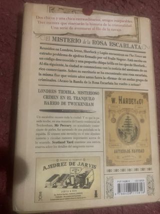 Libro de la serie Sherlock, Lupin y Yo de Irene Adler. - Título: El Misterio de la Rosa Escarlata. - Ilustraciones detalladas. - Ambientado en Londres.