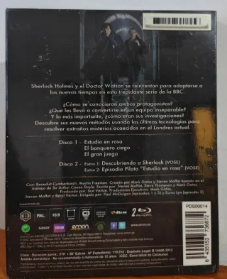 Edición coleccionista en Blu-ray de la primera temporada de Sherlock. - Incluye la serie Sherlock: Un nuevo detective para el siglo XXI. - Reconocida con premios BAFTA a Mejor Actor Secundario y Mejor Serie Dramática en 2011. - Audios disponibles en Castellano, Catalán e Inglés. - Subtítulos en Castellano y Catalán. - Tiempo de reproducción 270'+88' - Nueva y Precintada.
