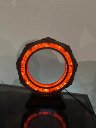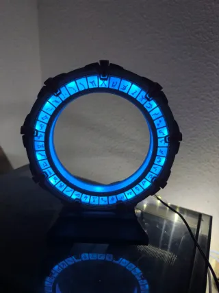 Réplica decorativa del portal Stargate con iluminación. - Elige la combinación de colores que mas te gusta - Diseño circular con símbolos. - Base de soporte incluida.