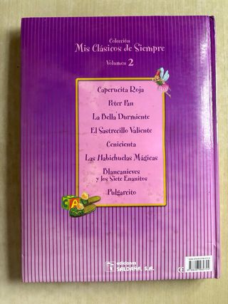 Libro que incluye 8 de los cuentos clásicos infantiles. Las páginas están dibujadas completamente y tienen poco texto con letra grande cada una de ellas.