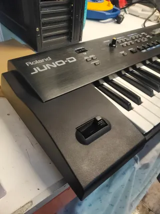Sintetizador Roland JUNO-D en color negro. Un instrumento musical versátil. - Teclado de 61 teclas. - Pantalla LCD. - Controles de pitch bend y modulación.